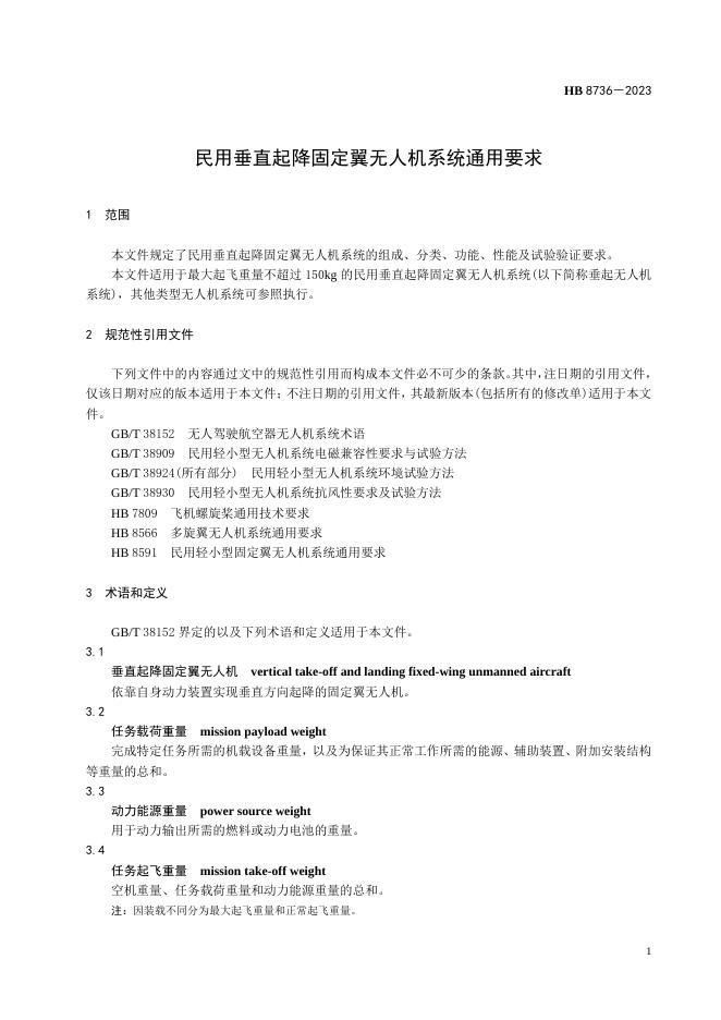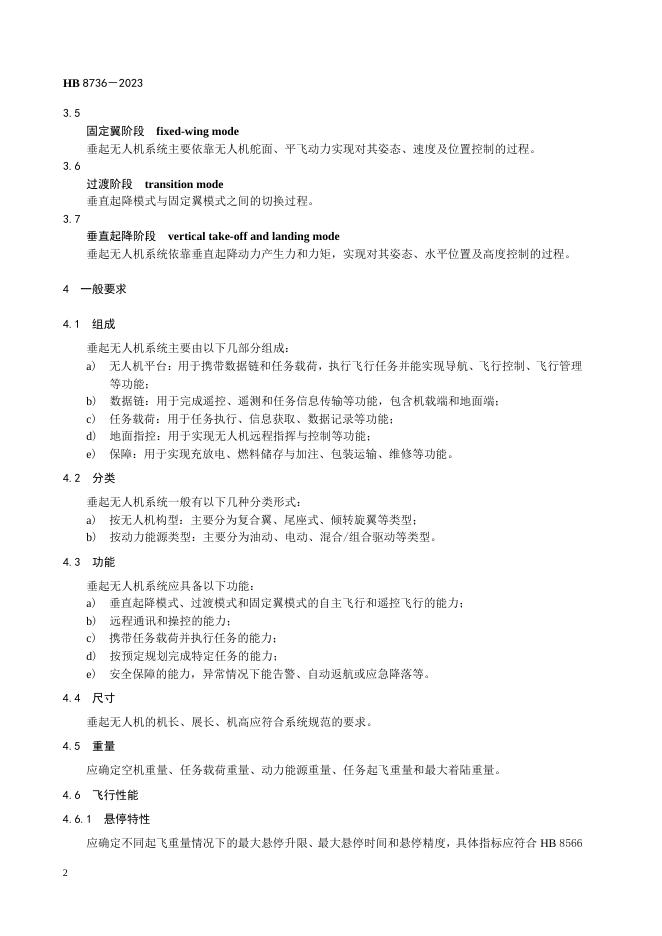 HB 8736-2023 民用垂直起降固定翼无人机系统通用要求