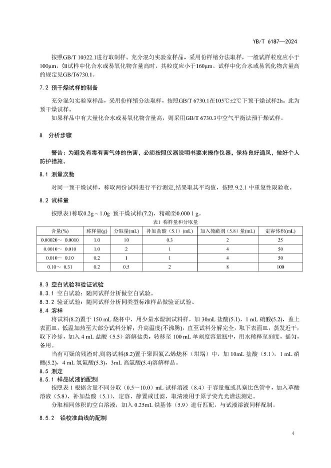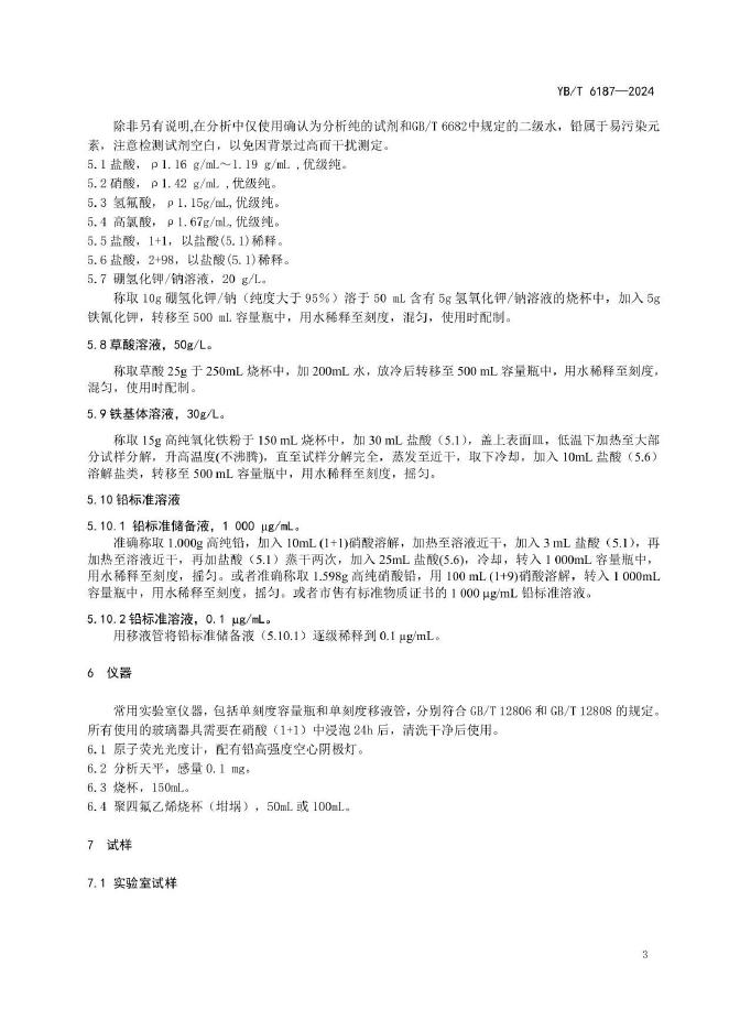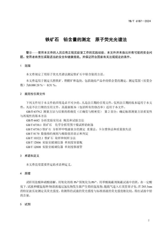 YB/T 6187-2024 铁矿石 铅含量的测定 原子荧光光谱法