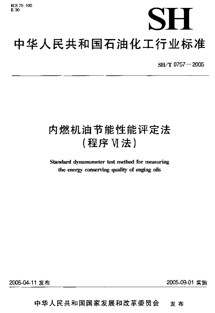 SH/T 0757-2005 内燃机油节能性能评定法(程序Ⅵ法)