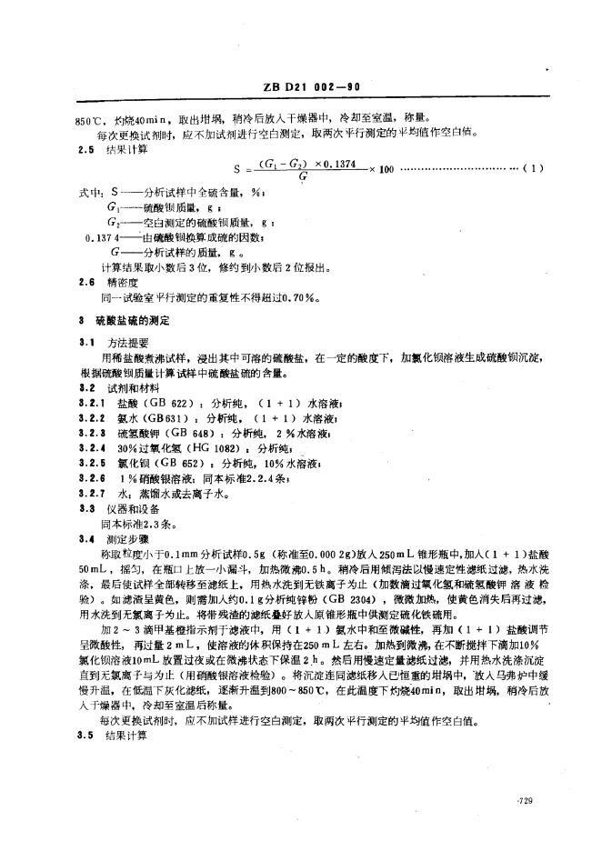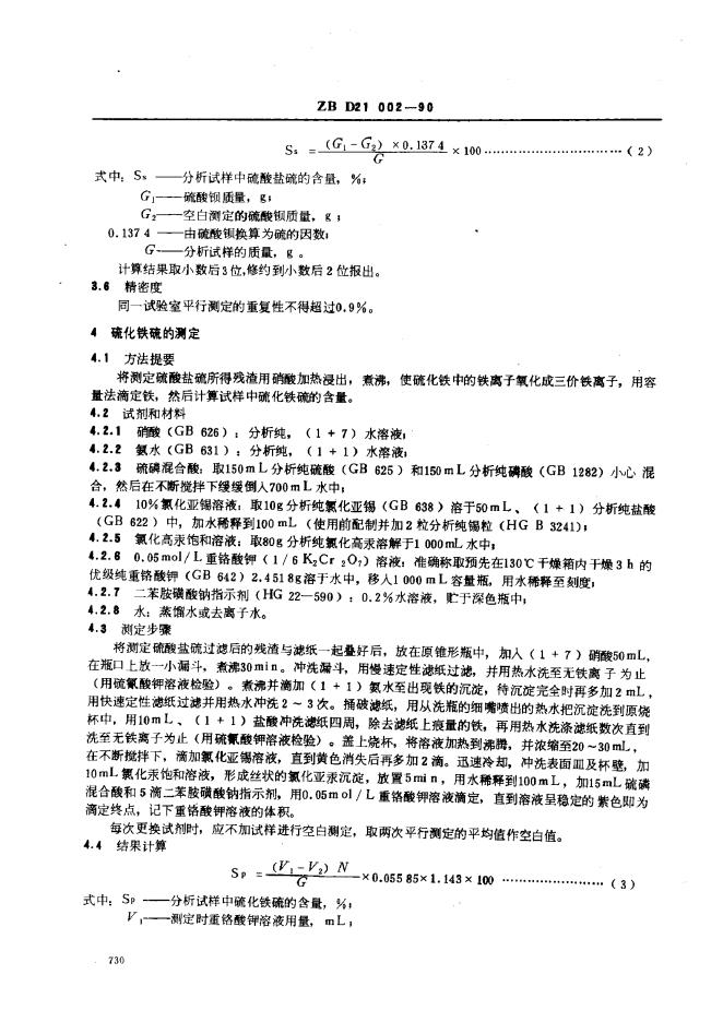 ZB 21002-1990 煤系硫铁矿及硫精矿中全硫、硫、盐酸硫、硫化铁硫的测定方法