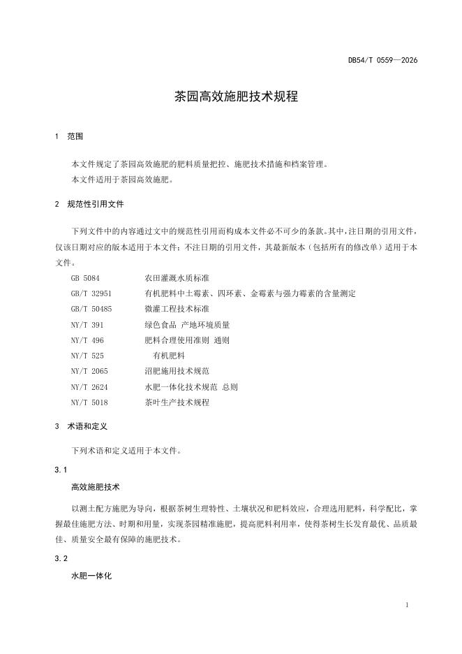 DB54/T 0559-2026 茶园高效施肥技术规程