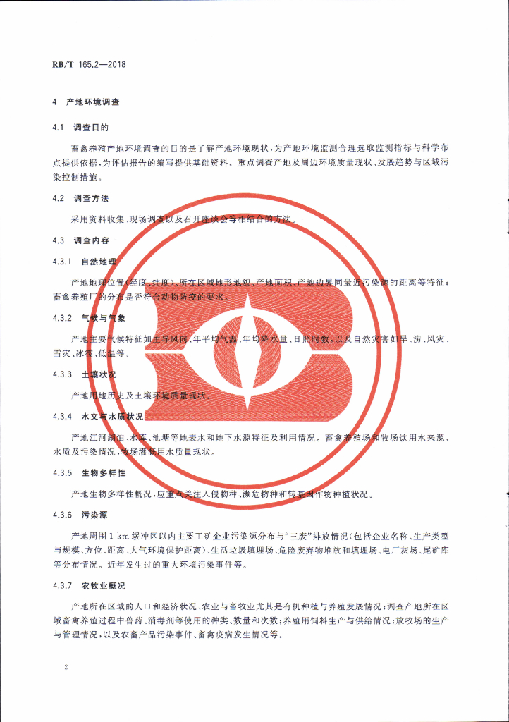 RB/T 165.2-2018 有机产品产地环境适宜性评价技术规范 第2部分:畜禽养殖