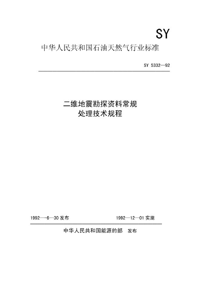 SY 5332-1992 二维地震勘探资料处理技术规程