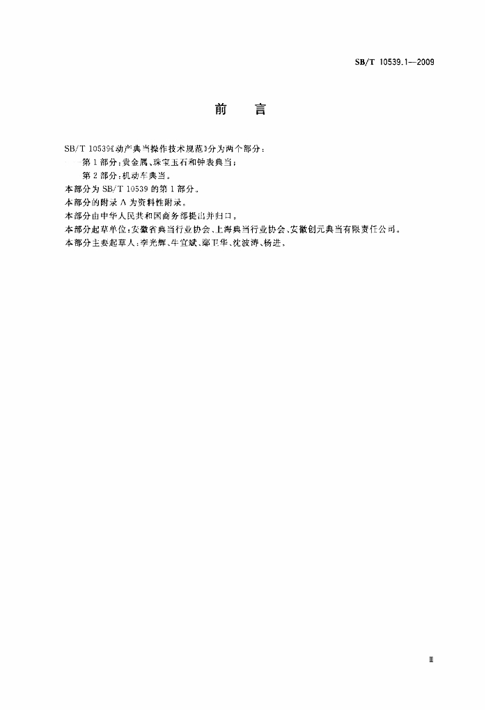 SB/T 10539.1-2009 动产典当操作技术规范 第1部分:贵金属、珠宝玉石和钟表