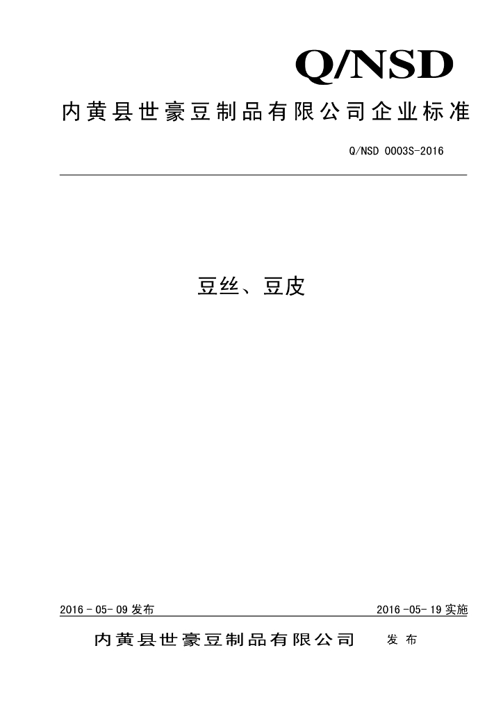 Q/NSD 0003S-2016 内黄县世豪豆制品有限公司 豆丝、豆皮