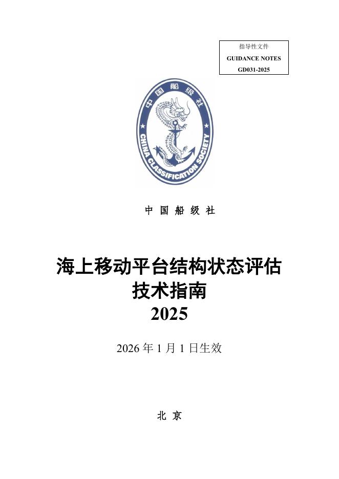中国船级社(CCS):海上移动平台结构状态评估技术指南2025