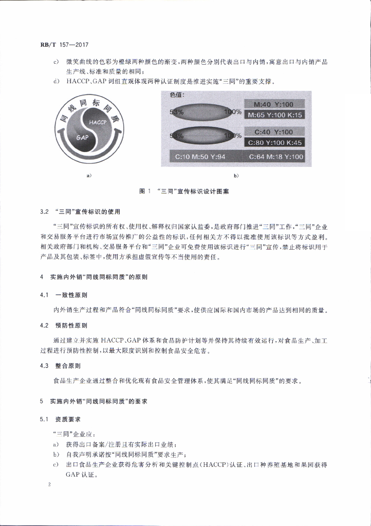 RB/T 157-2017 同线同标同质 出口食品企业实施要求