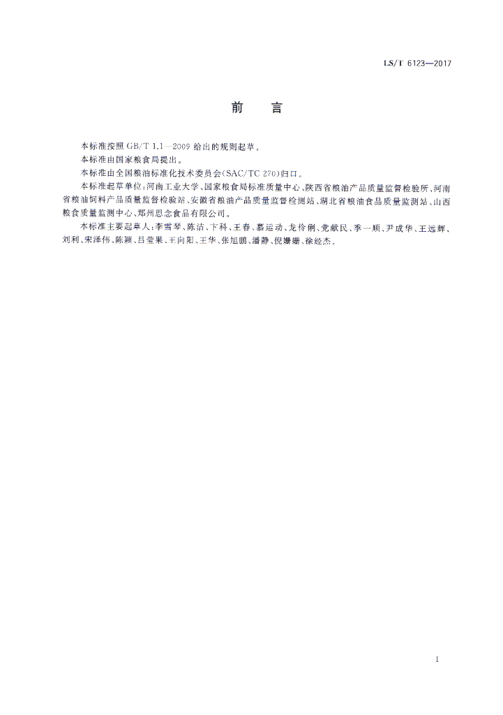 河南工业大学、国家粮食局标准质量中心、陕西省粮油产品质量监督检验所等