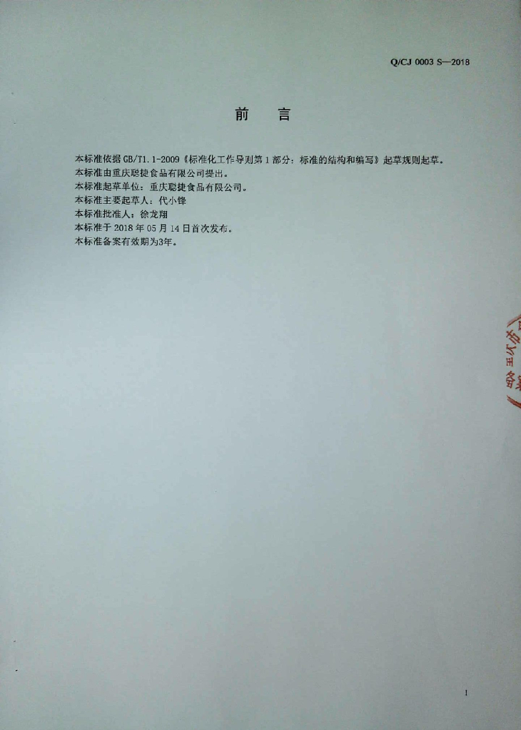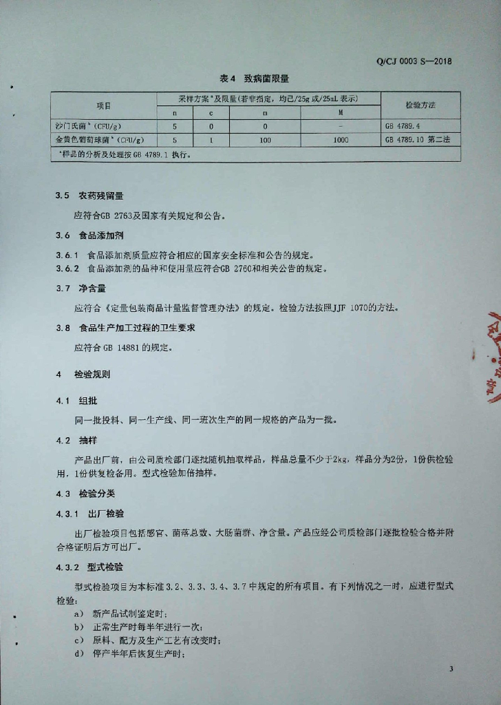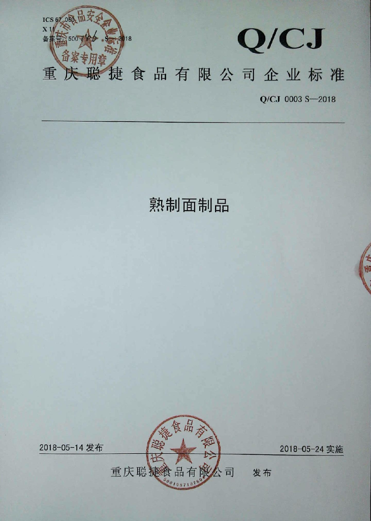 Q/CJ 0003S-2018 熟制面制品
