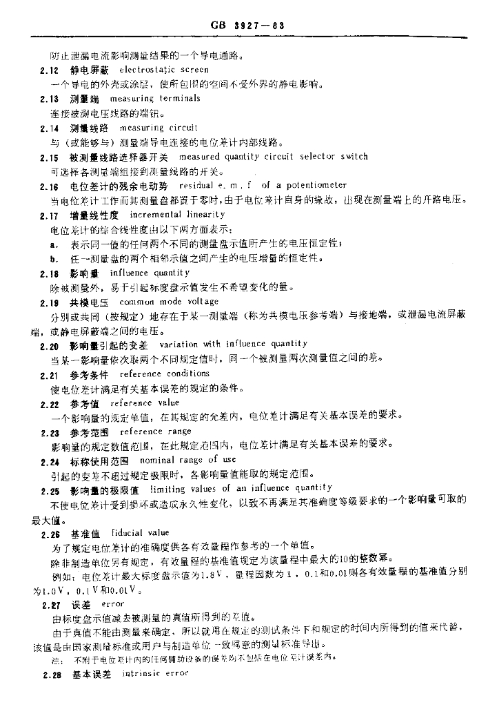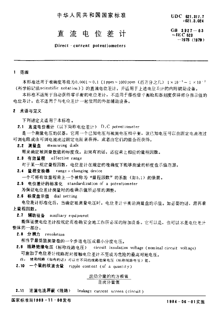 GB/T 3927-1983 直流电位差计