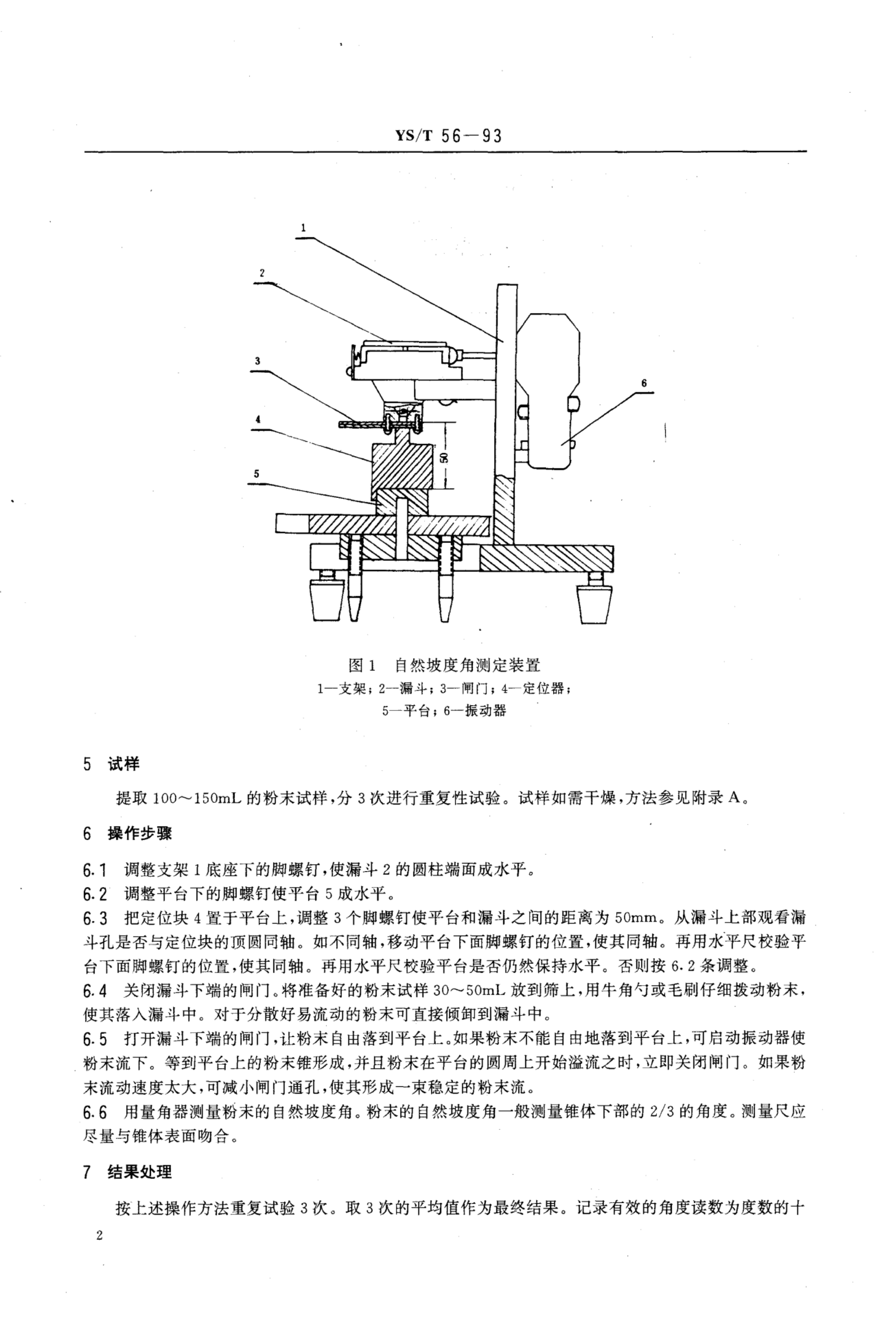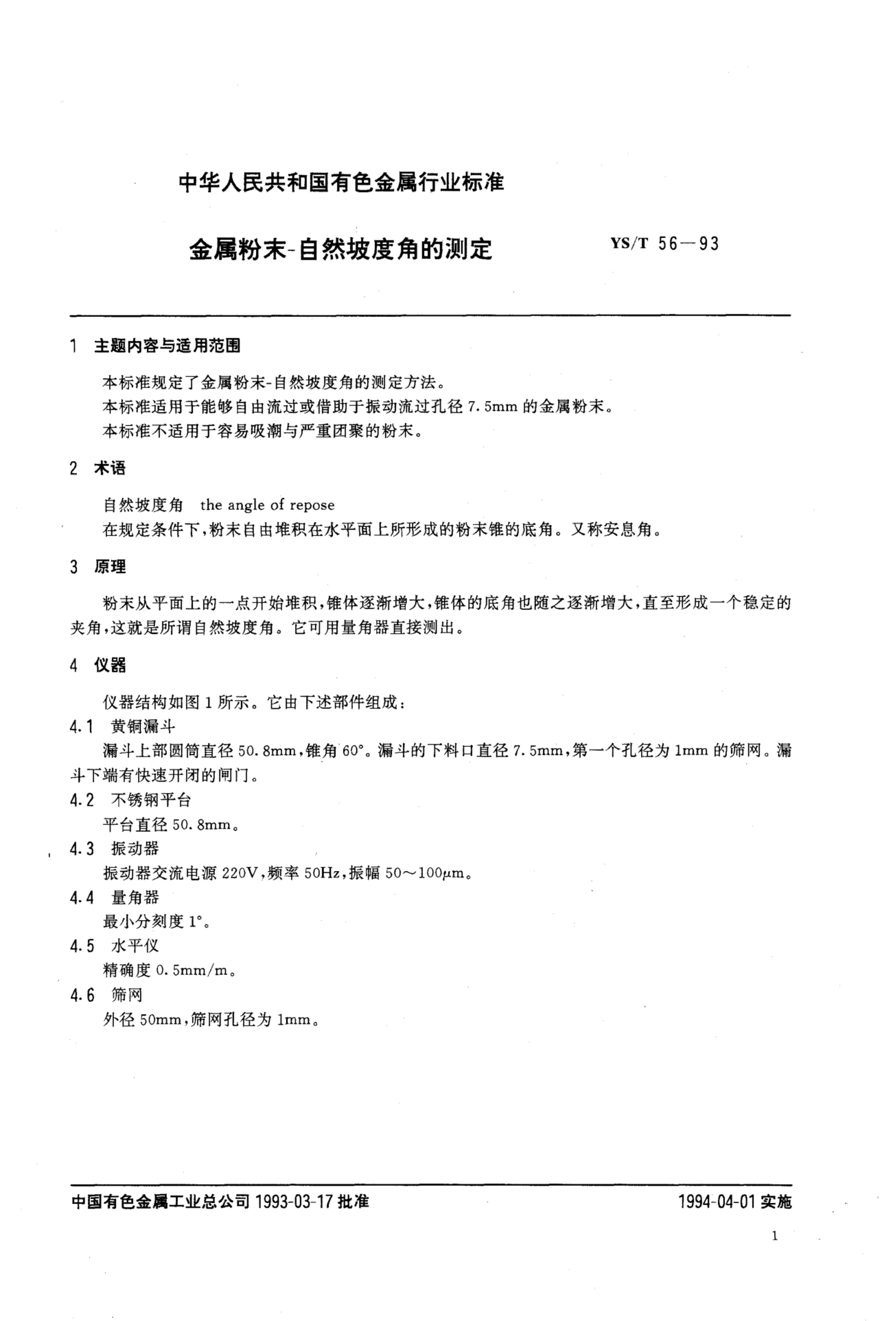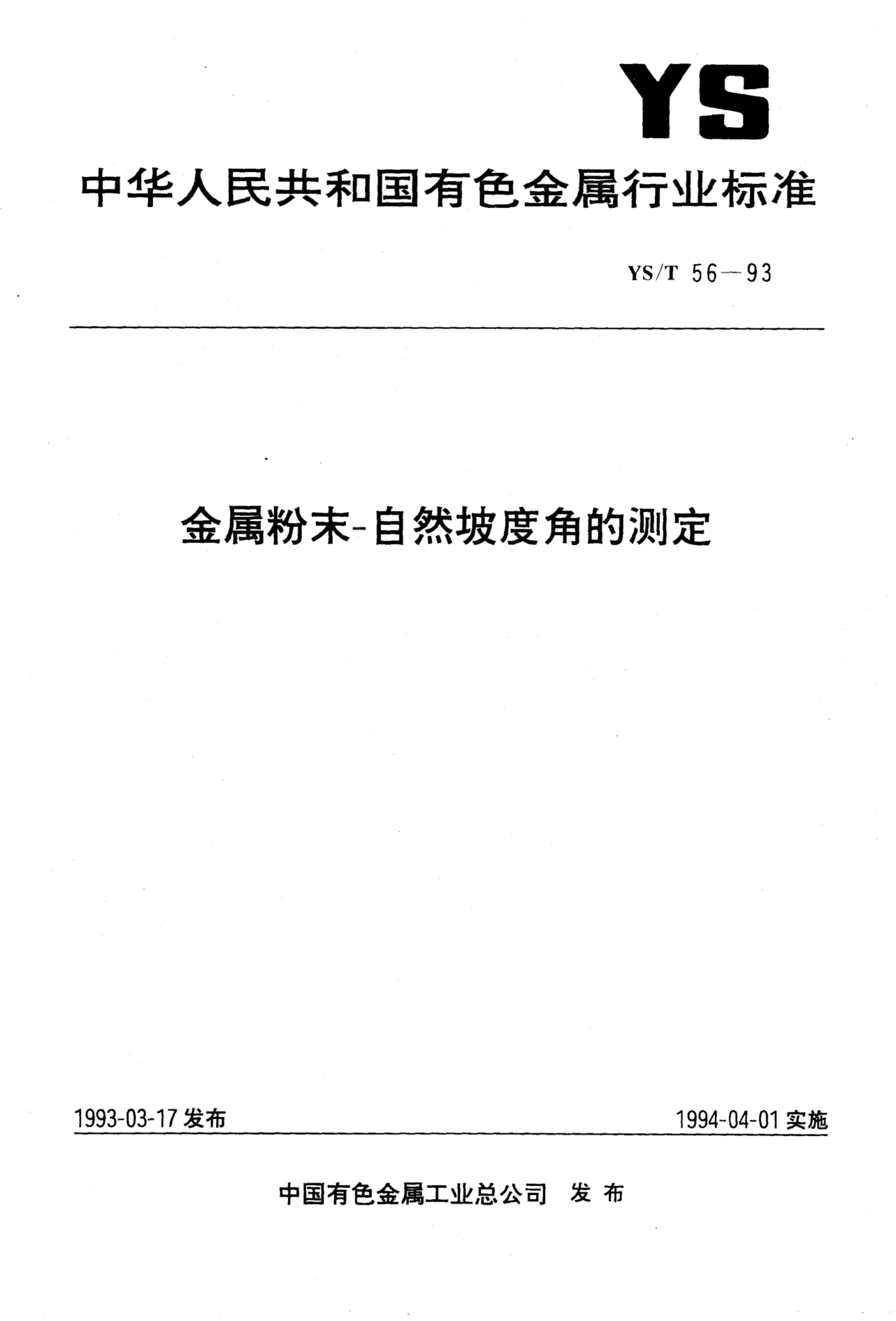 YS/T 56-1993 金属粉末-自然坡度角的测定