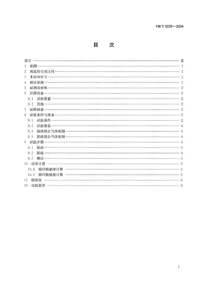 YB/T 6229-2024 烧结、球团烟气处理用活性炭循环脱硫脱硝性能试验方法