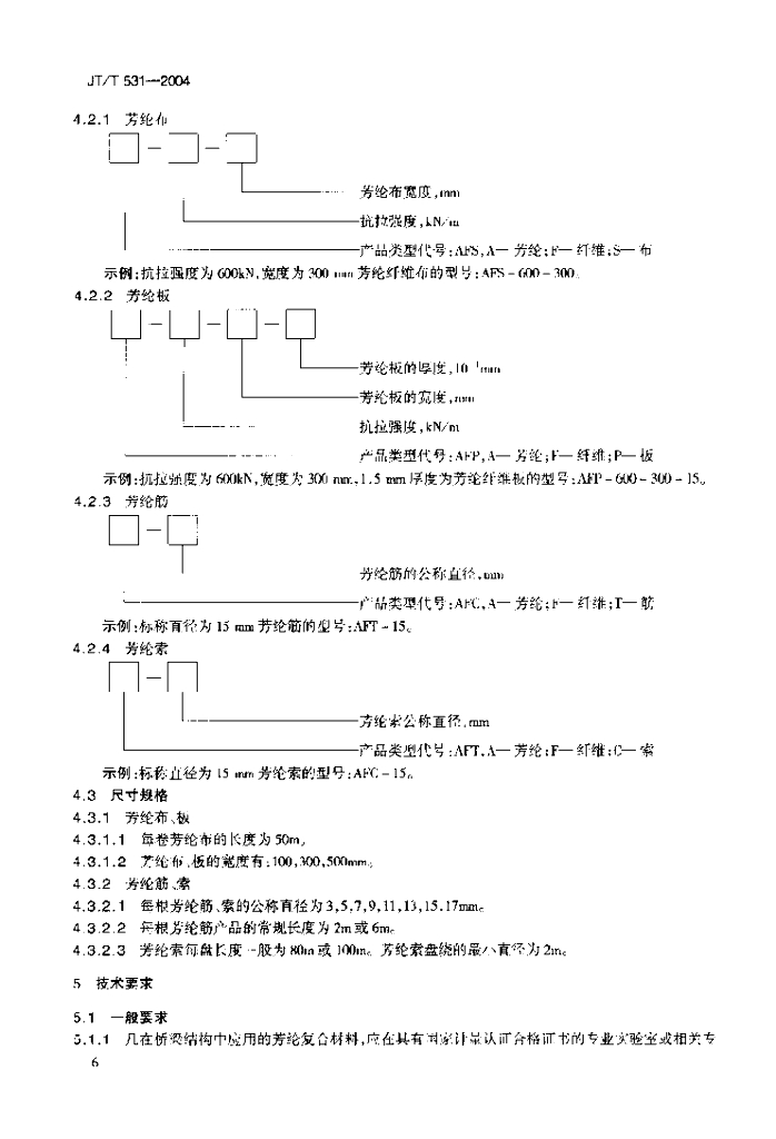 JT/T 531-2004 桥梁结构用芳纶纤维复合材料