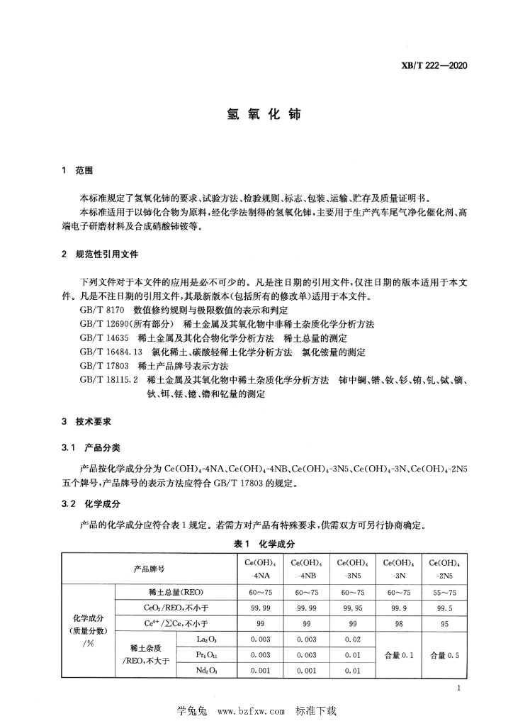 XB/T 222-2020 氢氧化铈