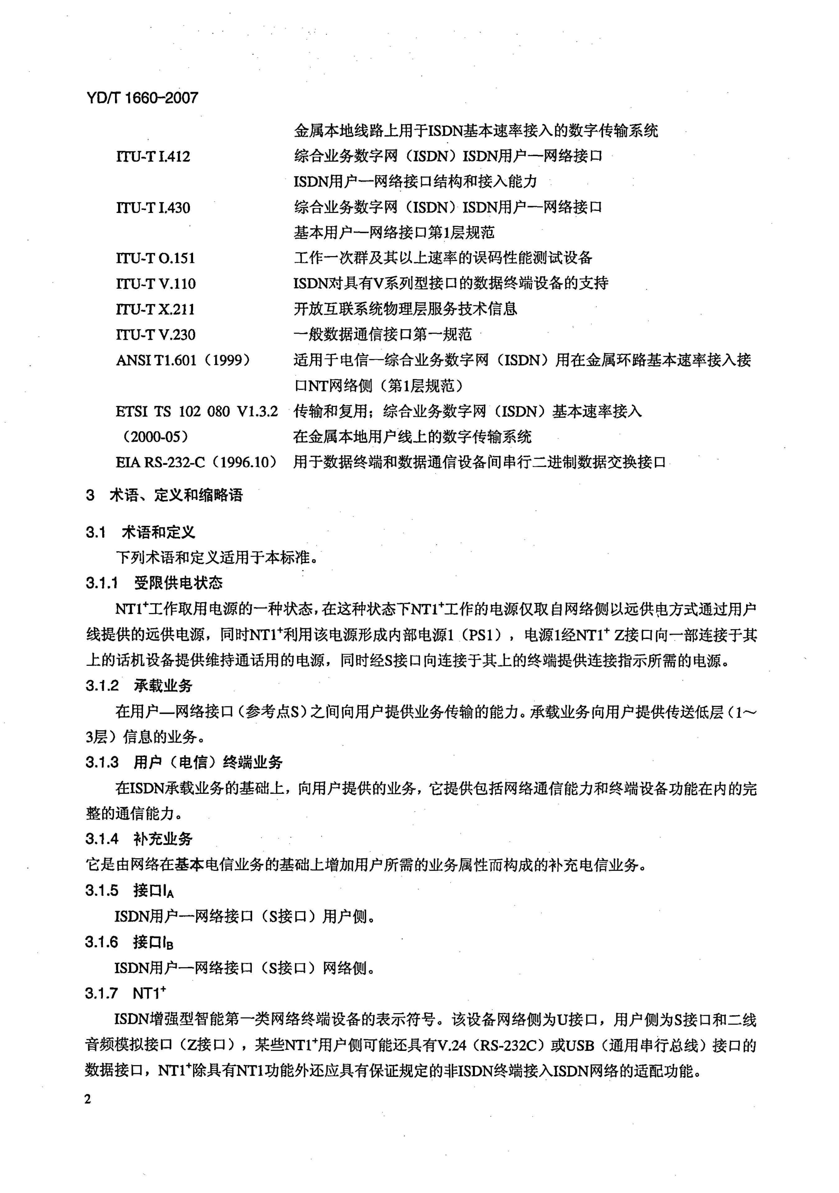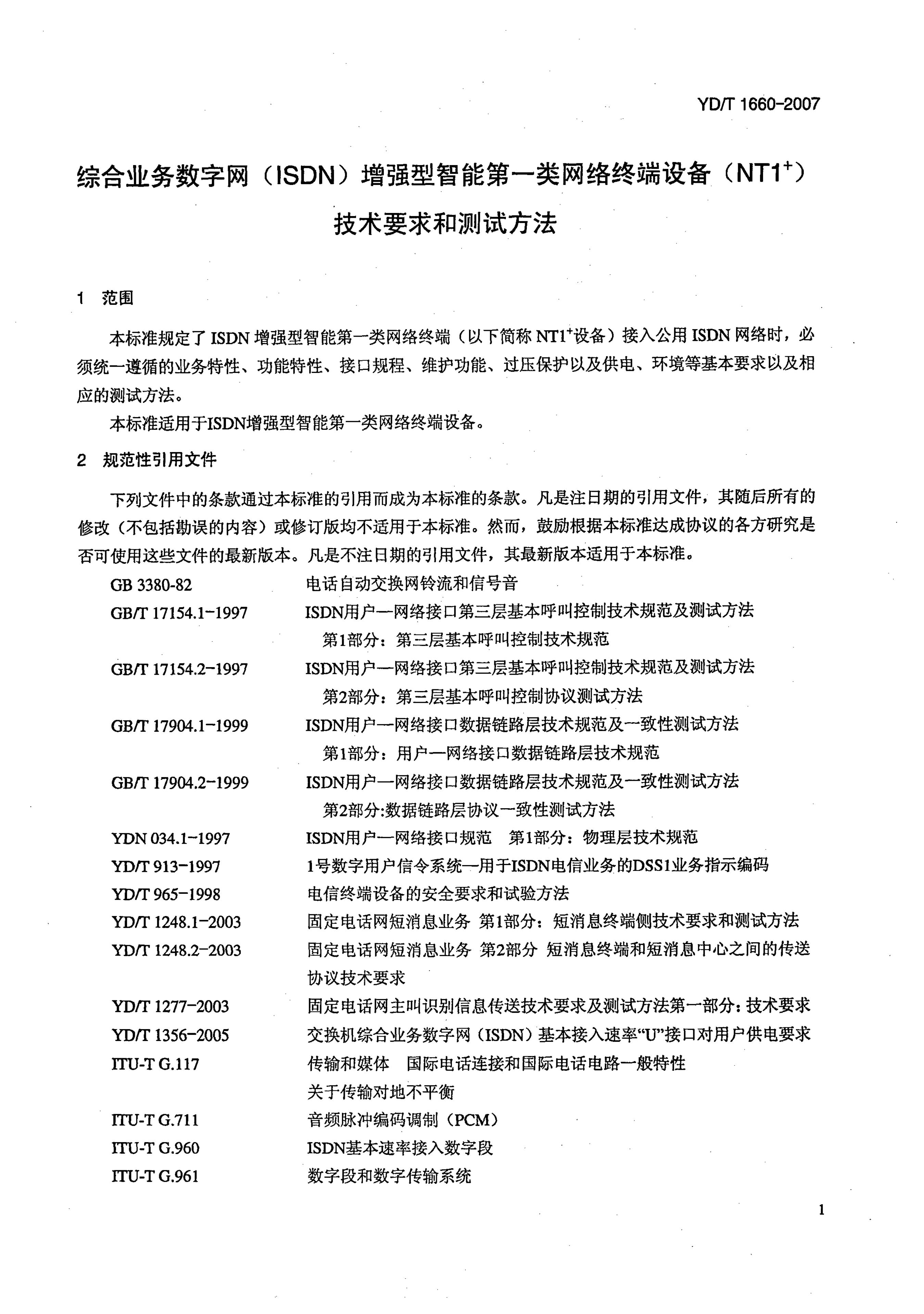 YD/T 1660-2007 综合业务数字网(ISDN)增强型智能第一类网络终端设备(NT1+)技术要求和测试方法