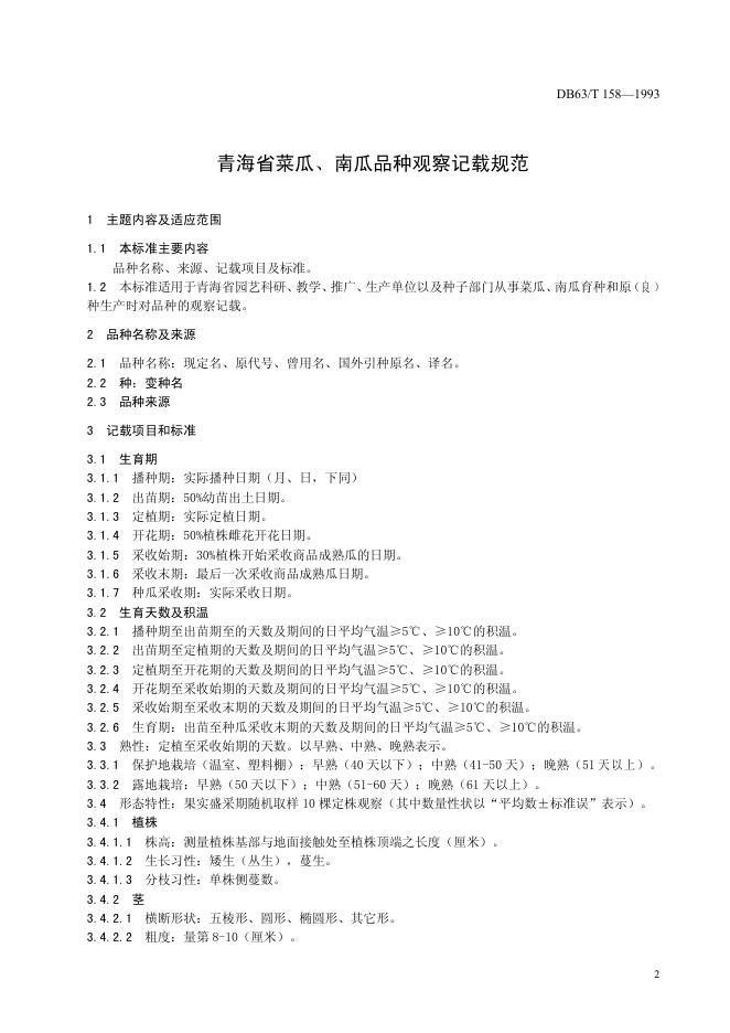DB63/T 158-1993 菜瓜、南瓜品种观察记载规程