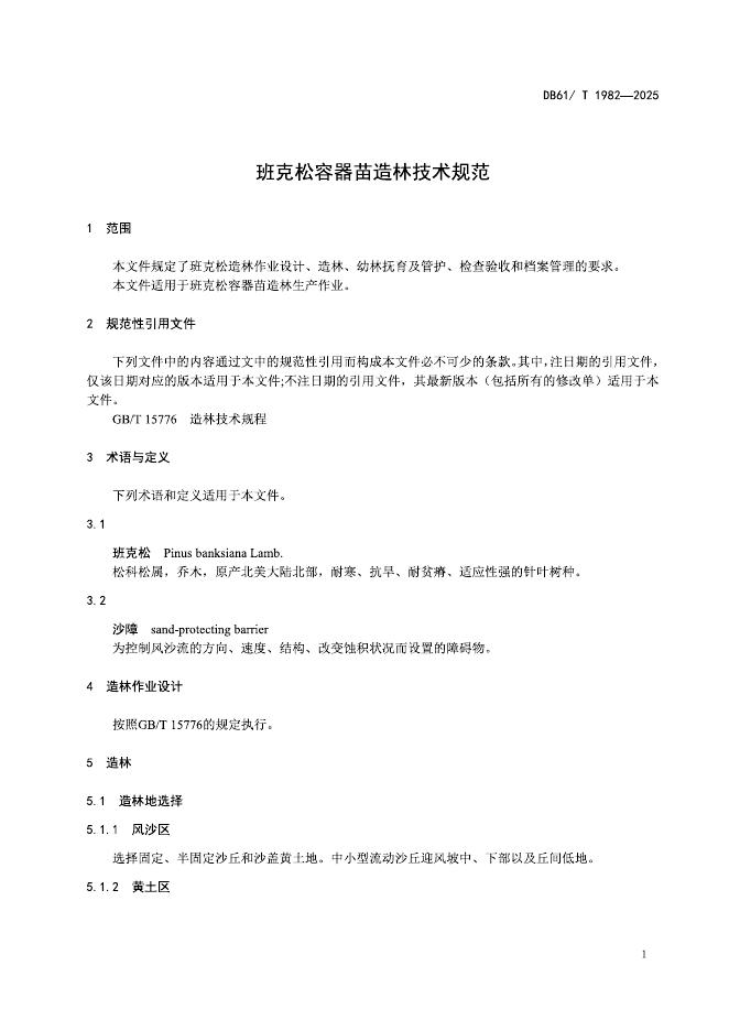DB61/T 1982-2025 班克松容器苗造林技术规范