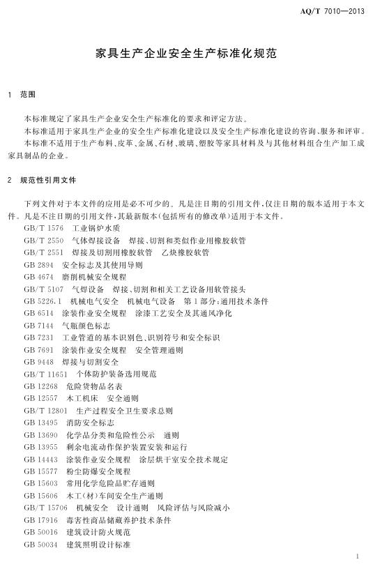 AQ/T 7010-2013 家具生产企业安全生产标准化规范