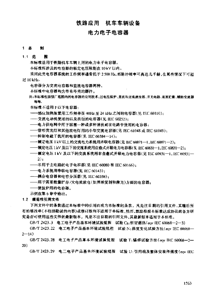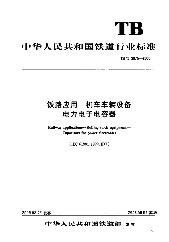 TB/T 3075-2003 铁路应用 机车车辆设备 电力电子电容器