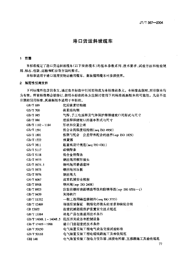 JT/T 567-2004 港口货运斜坡缆车