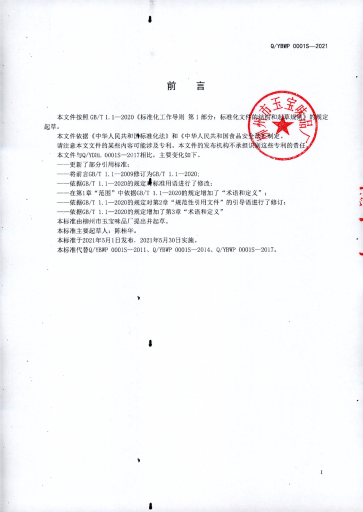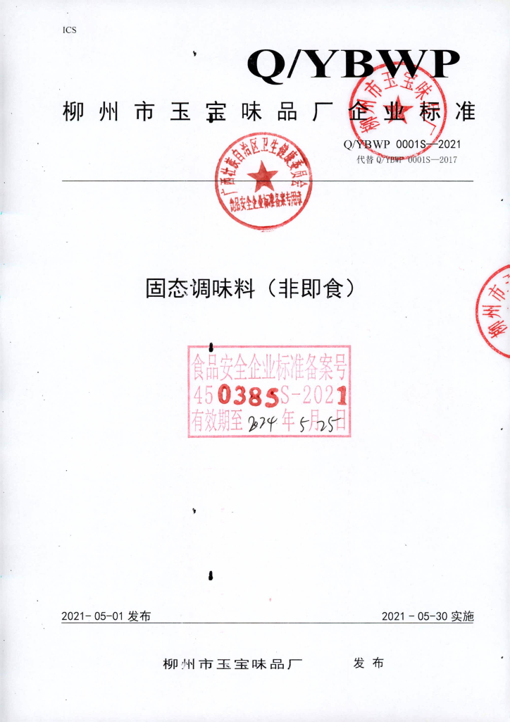 Q/YBWP 0001S-2021 固态调味料(非即食)