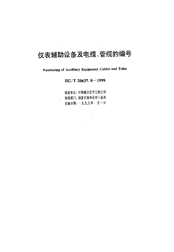 HG/T 20637.8-1998 仪表辅助设备及电缆、管缆的编号