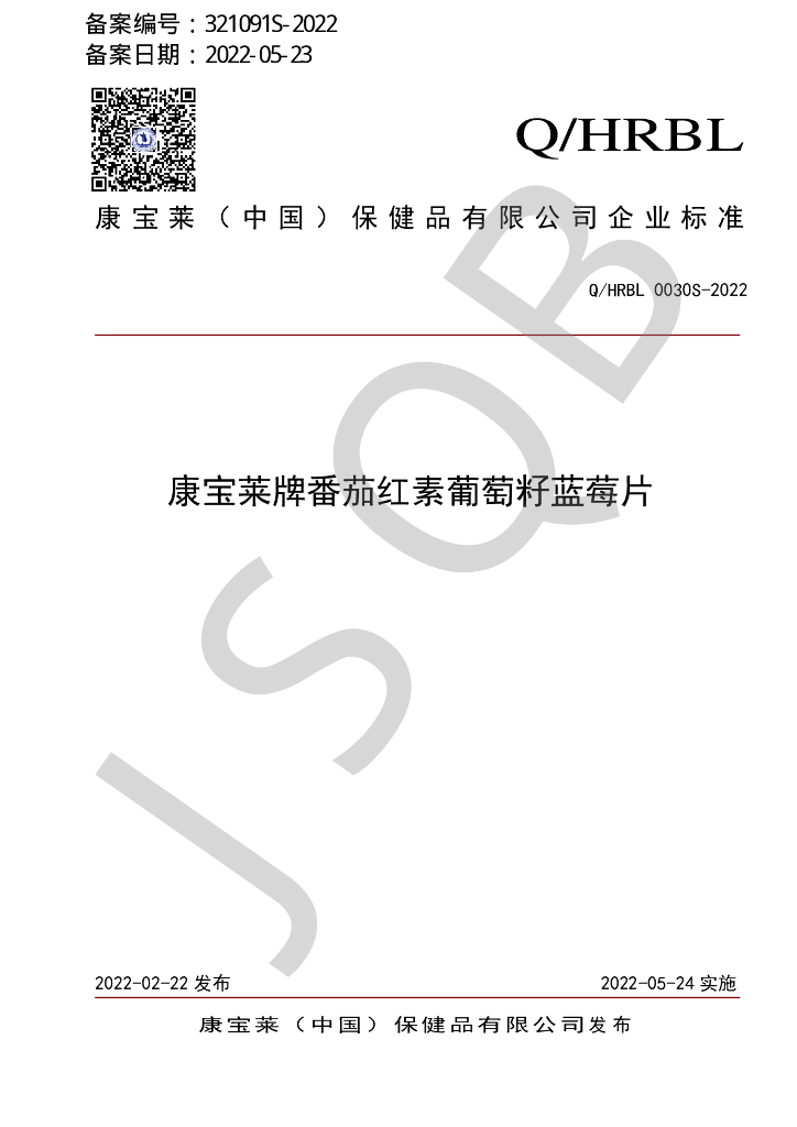 Q/HRBL 0030S-2022 康宝莱牌番茄红素葡萄籽蓝莓片