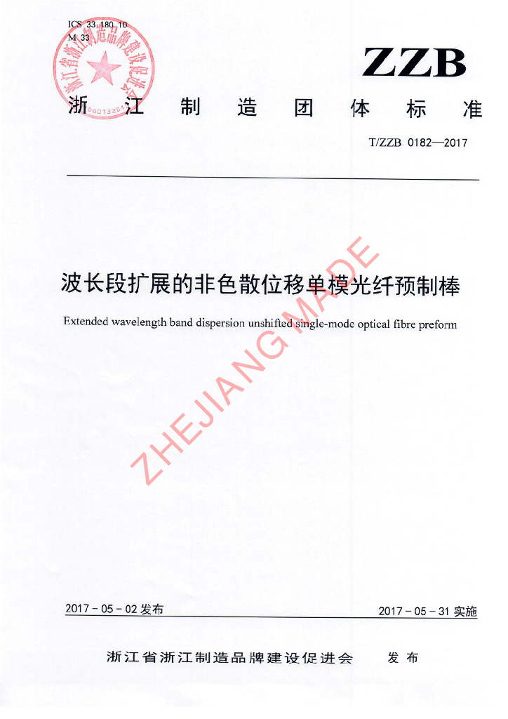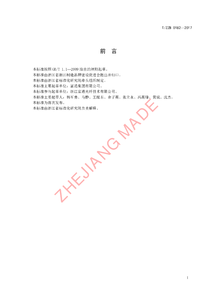 本标准由浙江省标准化研究院牵头组织制定。、本标准主要起草单位:富通集团有限公司。、本标准参与起草单位:浙江富通光纤技术有限公司。