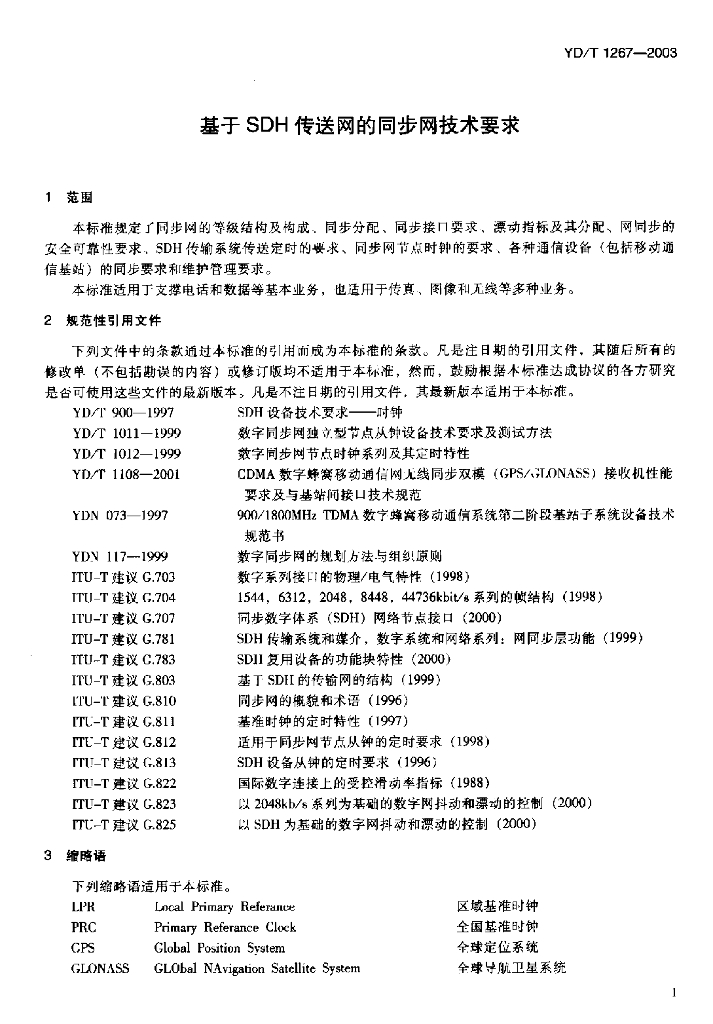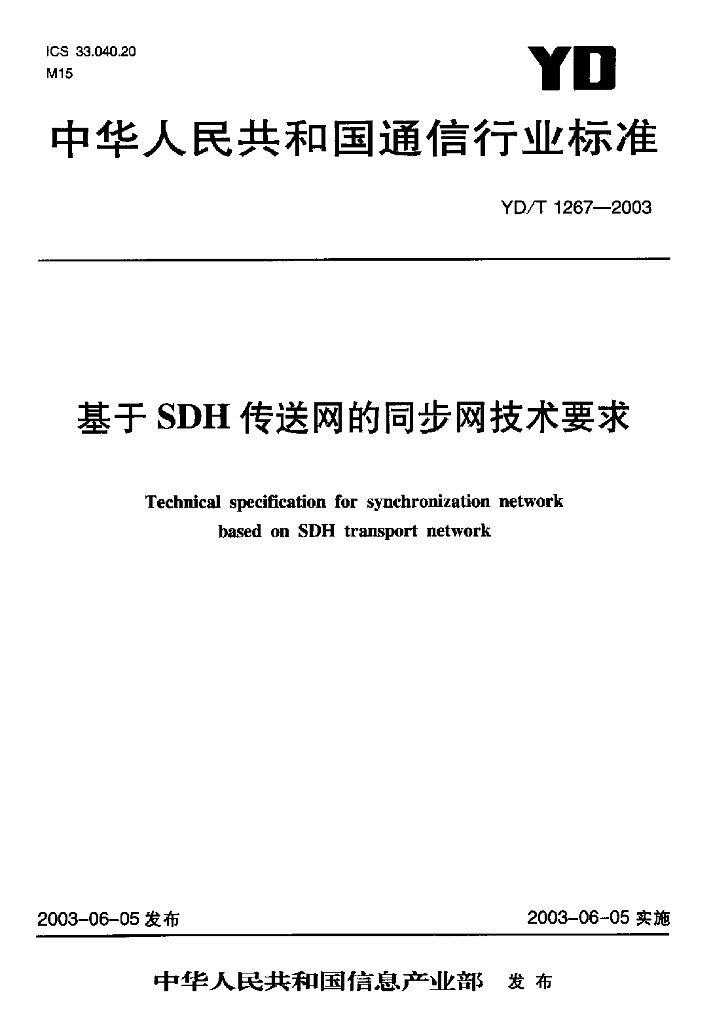 YD/T 1267-2003 基于 SDH 传送网的同步网技术要求