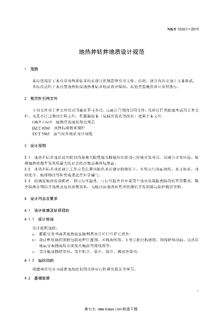 NB/T 10267-2019 地热井钻井地质设计规范