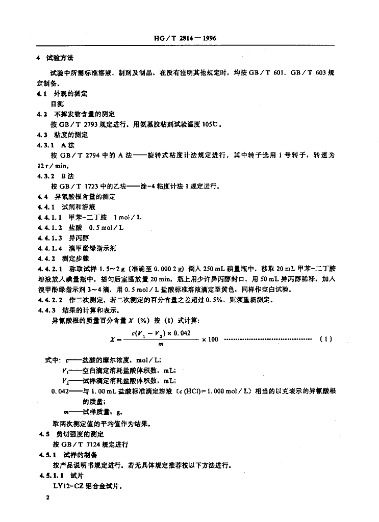 HG/T 2814-1996 通用型聚酯聚氨酯胶粘剂