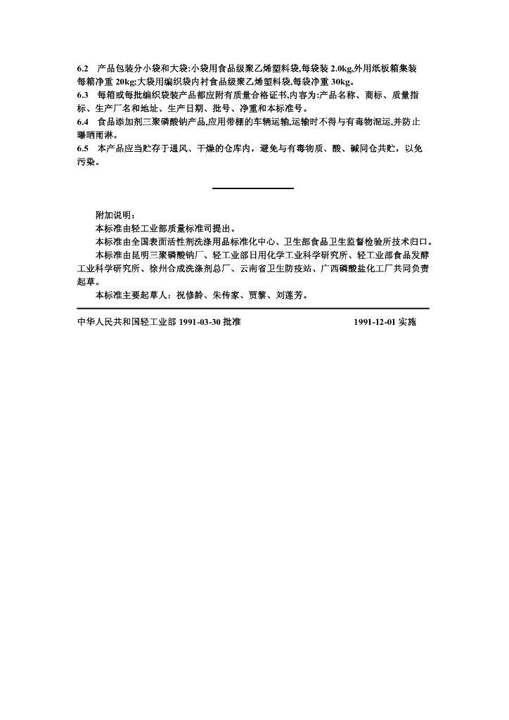 QB 1034-1991 食品添加剂三秦磷酸钠