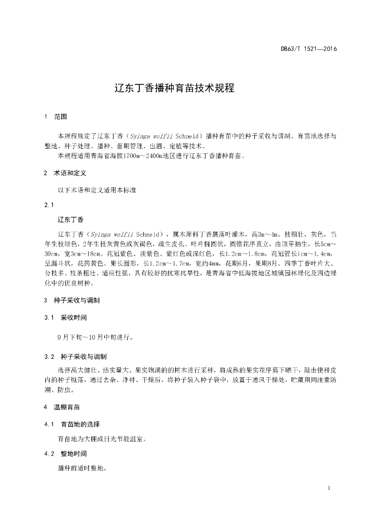 DB63/T 1521-2016 辽东丁香播种育苗技术规程