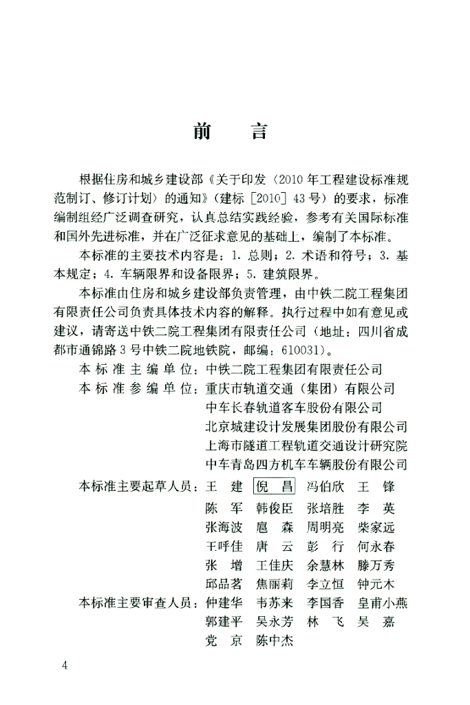 中铁二院工程集团有限责任公司、重庆市轨道交通(集团)有限公司、中车长春轨道客车股份有限公司、北京城建设计发展集团股份有限公司、上海市隧道工程轨道交通设计研究院、中车青岛四方机车车辆股份有限公司