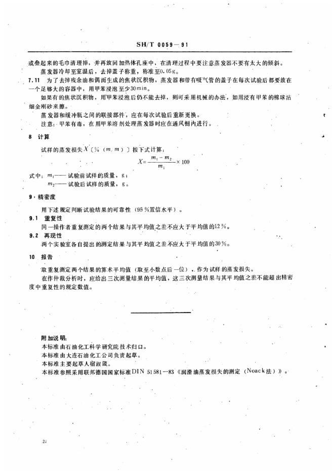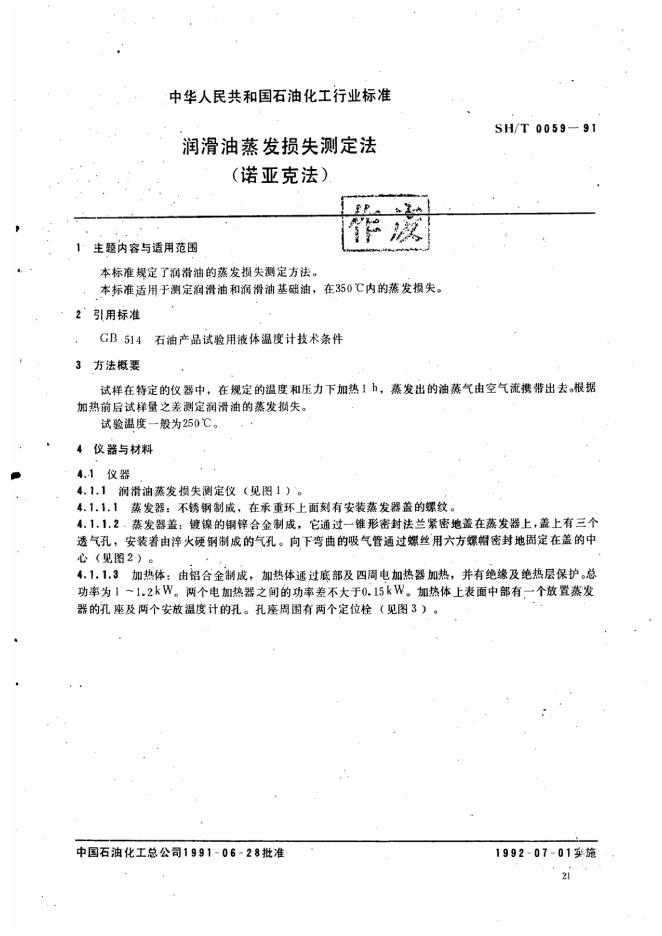 SH/T 0059-1991 润滑油蒸发损失测定法诺亚克法