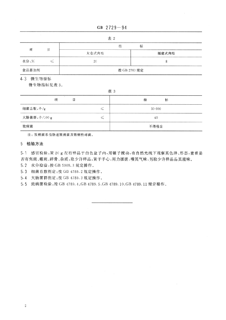 GB 2729-1994 肉松卫生标准