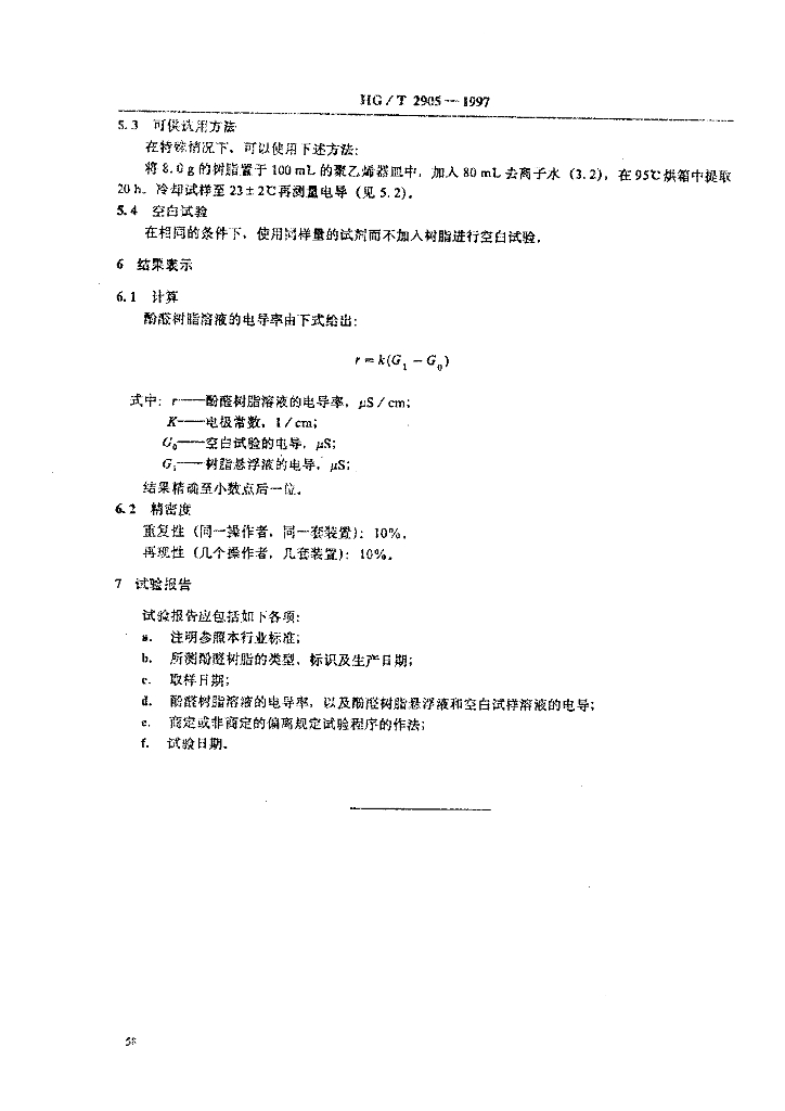 HG/T 2905-1997 酚醛树脂萃取液电导率的测定