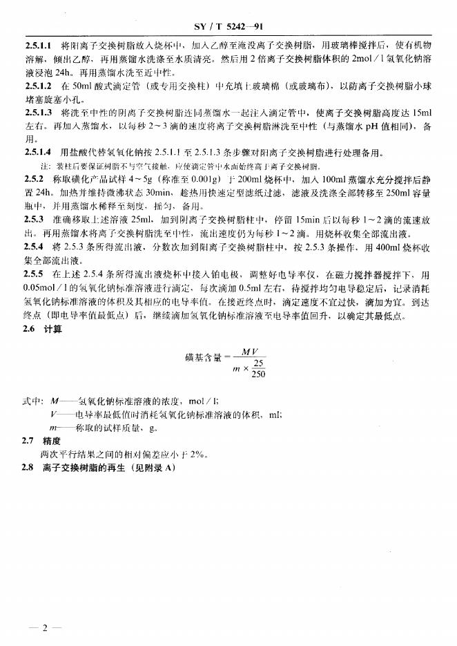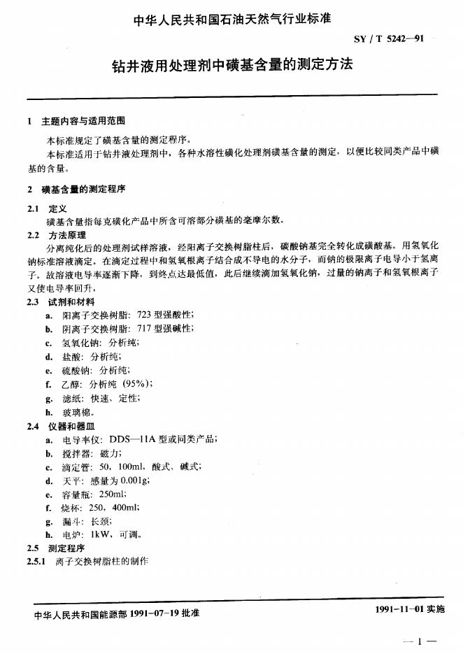 SY/T 5242-1991 钻井液用自理剂中磺基含量的测定方法