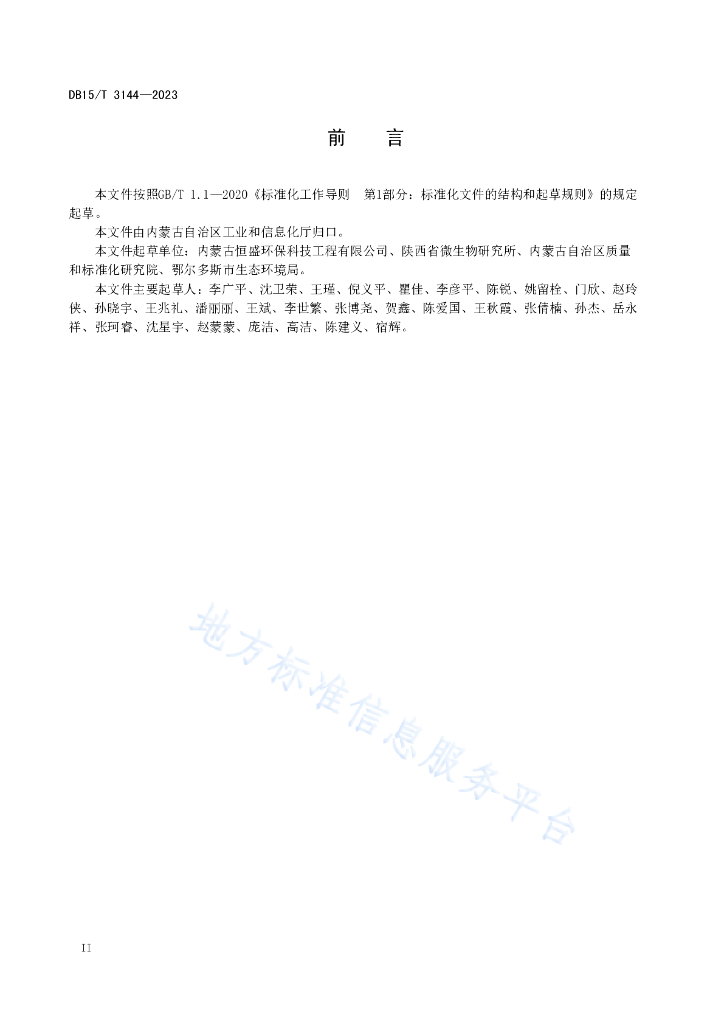内蒙古恒盛环保科技工程有限公司、陕西省微生物研究所、内蒙古自治区质量和标准化研究院、鄂尔多斯市生态环境局