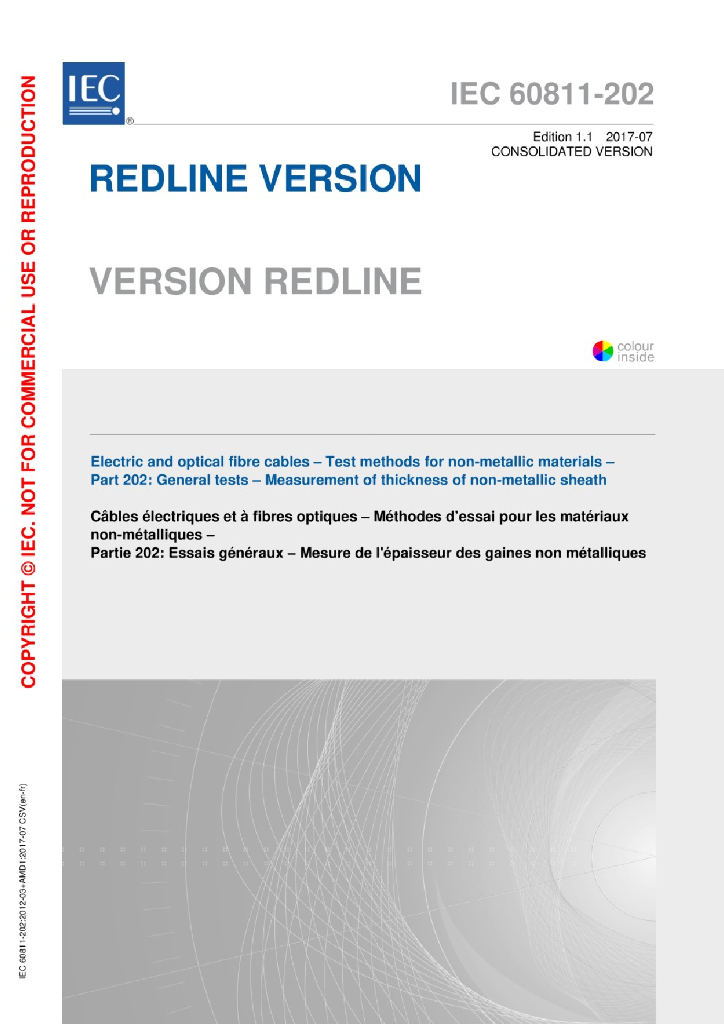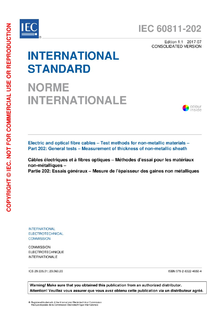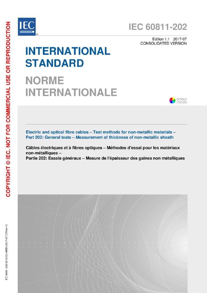 IEC 60811-202:2012+AMD1:2017 电缆和光缆 非金属材料的试验方法 第202部分:一般试验-非金属护套厚度测量