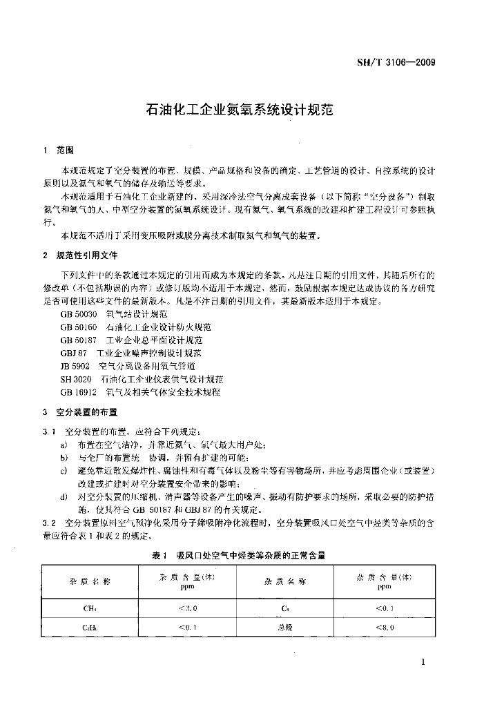 SH/T 3106-2009 石油化工企业氮氧系统设计技术规范