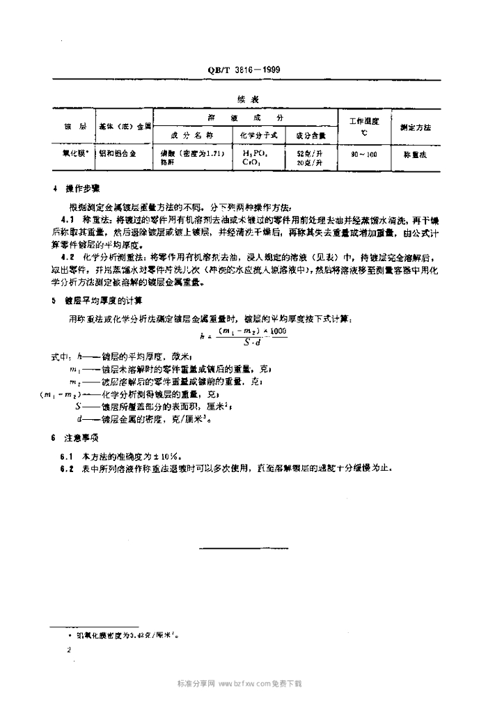 QB/T 3816-1999 轻工产品金属镀层和铝氧化膜的厚度测试方法测重法