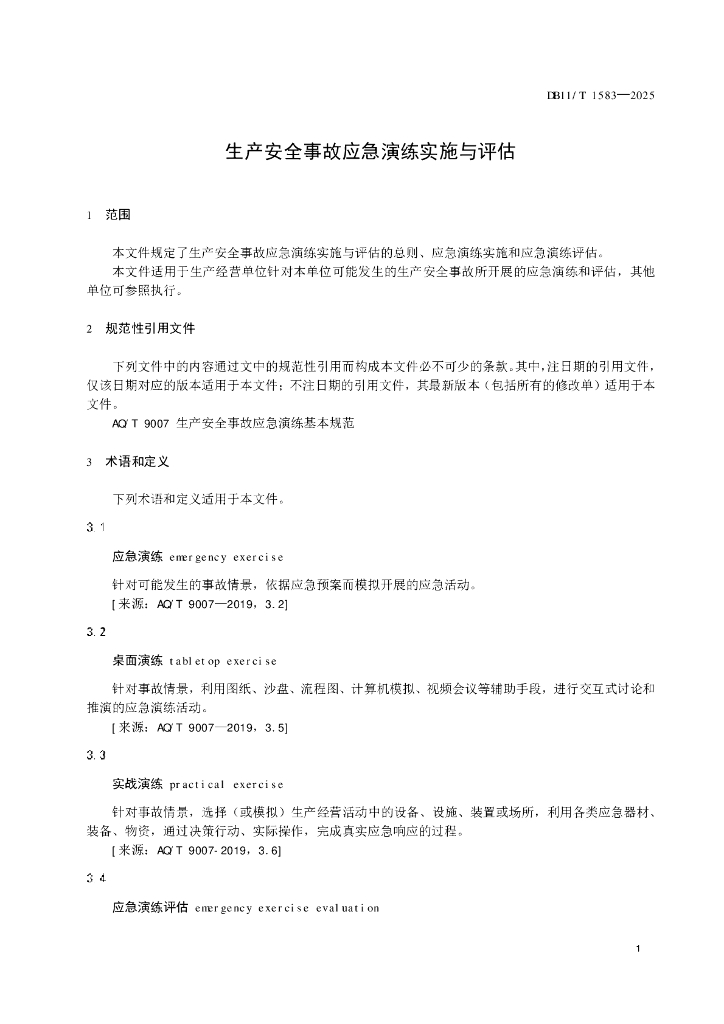 DB11/T 1583-2025 生产安全事故应急演练实施与评估