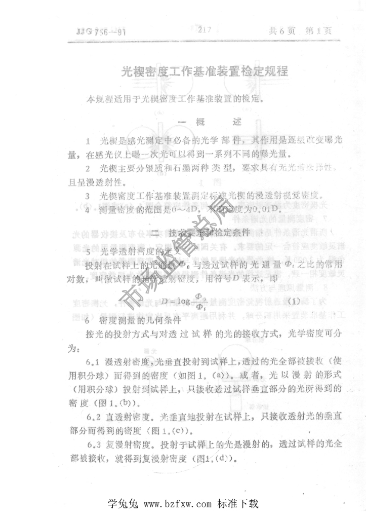 JJG 756-1991 光楔密度工作基准装置检定规程