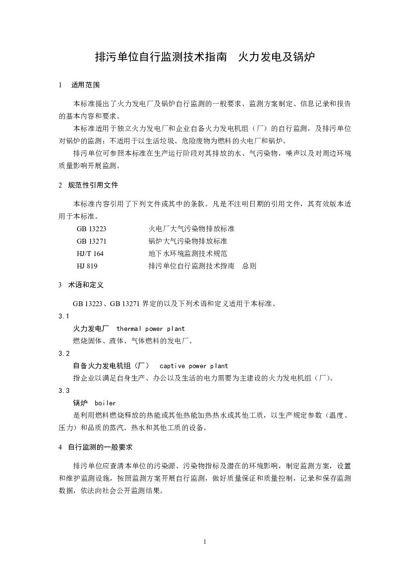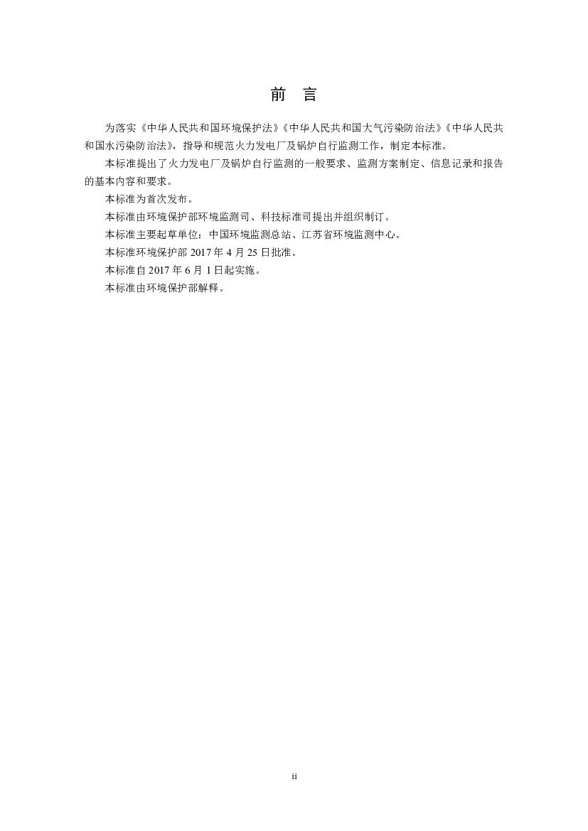 HJ 820-2017 排污单位自行监测技术指南 火力发电及锅炉