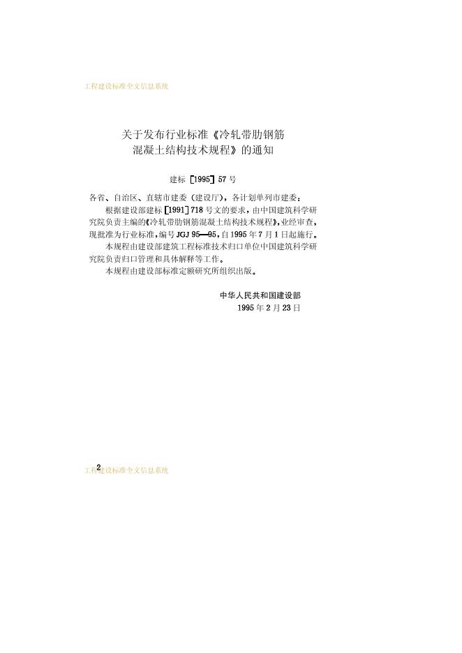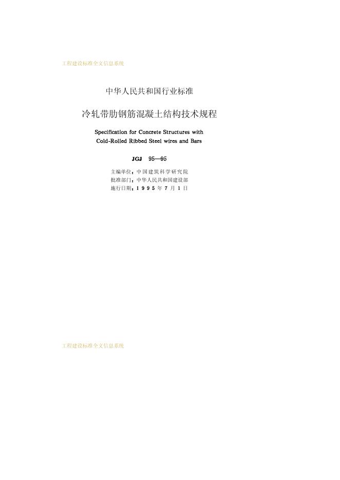 JGJ 95-1995 冷轧带肋钢筋混凝土结构技术规程