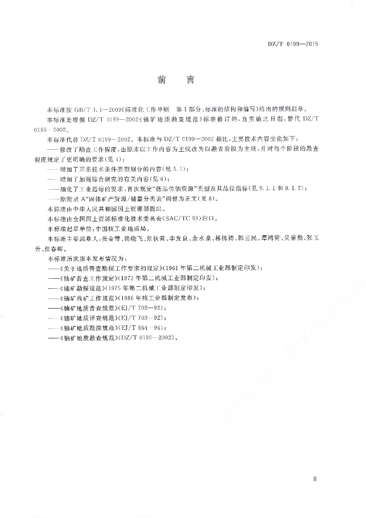 DZ/T 0199-2015 铀矿地质勘查规范