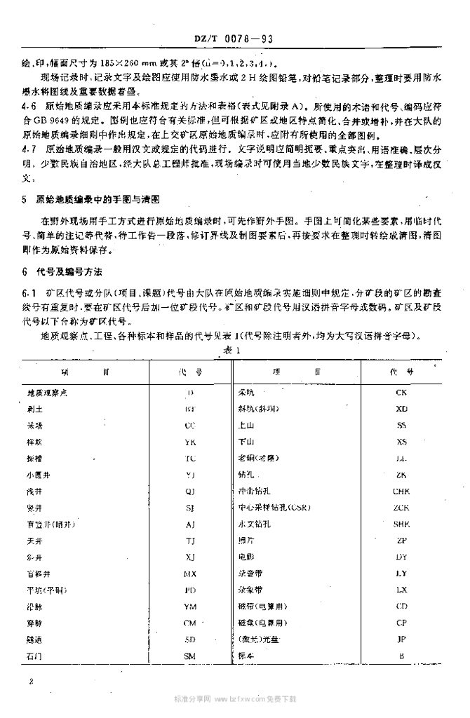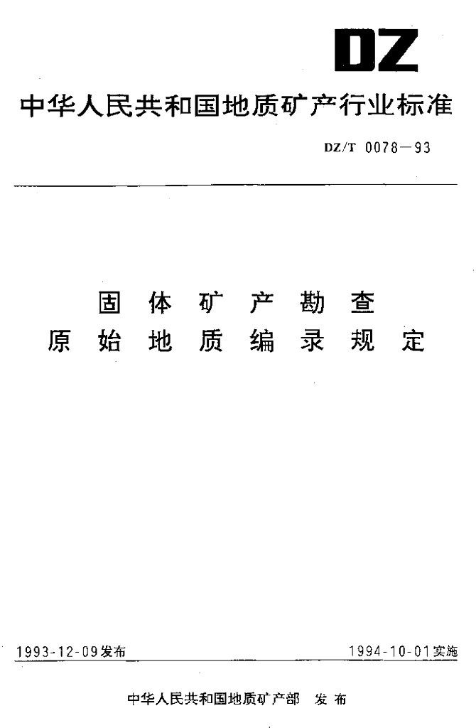 DZ/T 0078-1993 固体矿产勘查原始地质编录规定