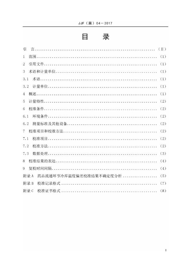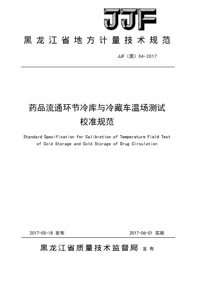 JJF(黑)04-2017 药品流通环节冷库与冷藏车温场测试校准规范
