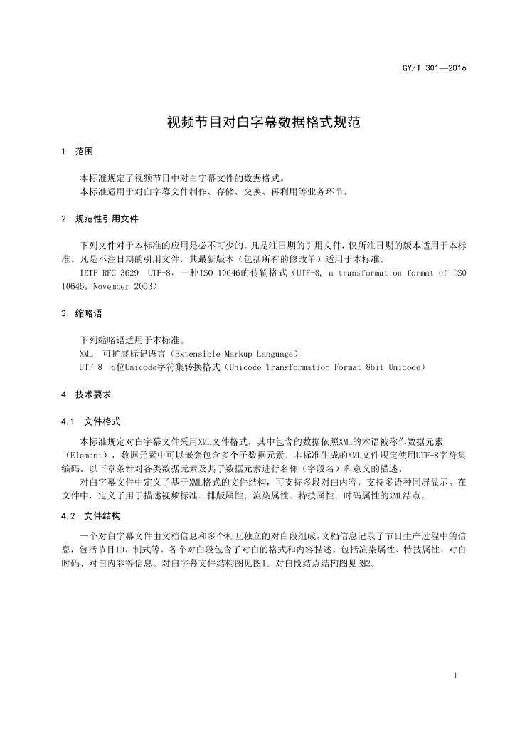 GY/T 301-2016 视频节目对白字幕数据格式规范
